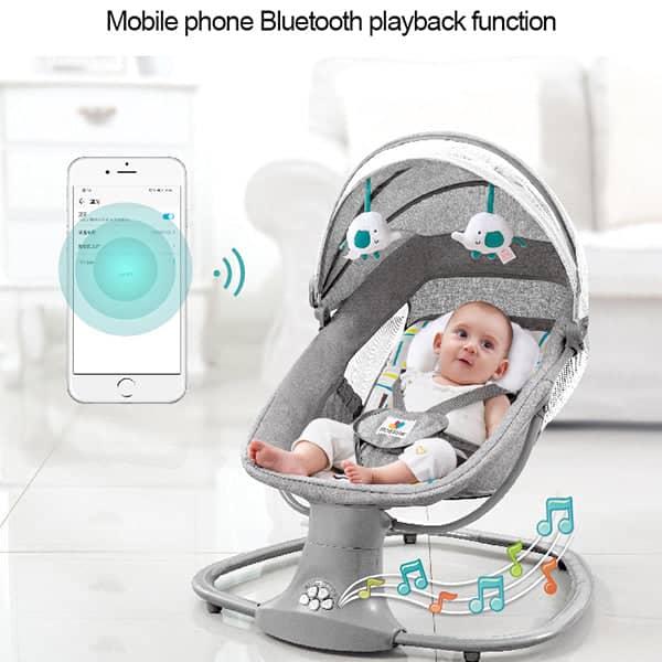 Connect via Bluetooth to play your favorite nursery rhymes directly from your phone! Control the baby swing chair effortlessly with both a Touch Key and Remote Control, giving you the freedom to enjoy your own space. Plus, with three adjustable timing functions, you can effortlessly set the duration to save time and energy.