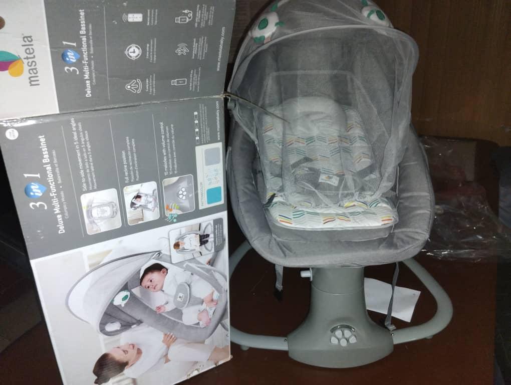The Mastela 3-in-1 Deluxe Multifunctional Bassinet is an adaptable and practical solution that serves as a swing, bouncer, or feeding chair. With five adjustable swing speeds, you can find the ideal setting for your baby, while the built-in music and remote control keep them happily entertained. The three-stage timing function guarantees your baby’s comfort, and the five-point safety harness ensures they are safe and secure.