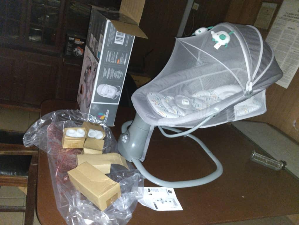 The hanging toy on the rocking chair helps develop your baby’s grasping skills while capturing their attention. The removable, foldable mosquito net offers complete protection from pestering insects when sleeping indoors or outdoors. The swinging chair features two power supply modes and is a breeze to assemble. Battery not included. Assembly is quick and easy!